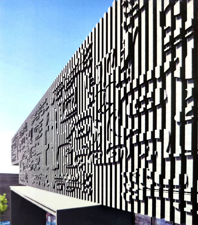 博物館立面設計上,采用了代表扶風文化特色的青銅器紋理,作為基礎的紋路,形成獨特的扶風文化符號;建筑的外立面主材料,采用橫向拉絲的混凝土材料,如同歷史的層巖自然紋理,寓意著歷史的沉淀感與厚重感。