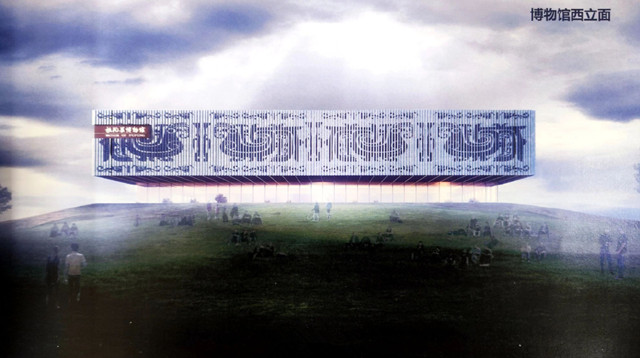 博物館設計占地面積約7542 ㎡。新館設計理念以西周文化為準,博物館入口,設計如同書本翻開的旋轉豎向遮陽板,上面篆刻《扶風歌》《周禮》等文字,讓入口長廊形成進入博物館的文化儀式空間。立面設計以扶風青銅器紋理元素為肌理符號,貫徹地域文化理念,打造具有獨特扶風符號的地域文化博物館;博物館前場設計了草坡廣場空間,文化與趣味,融為一體。